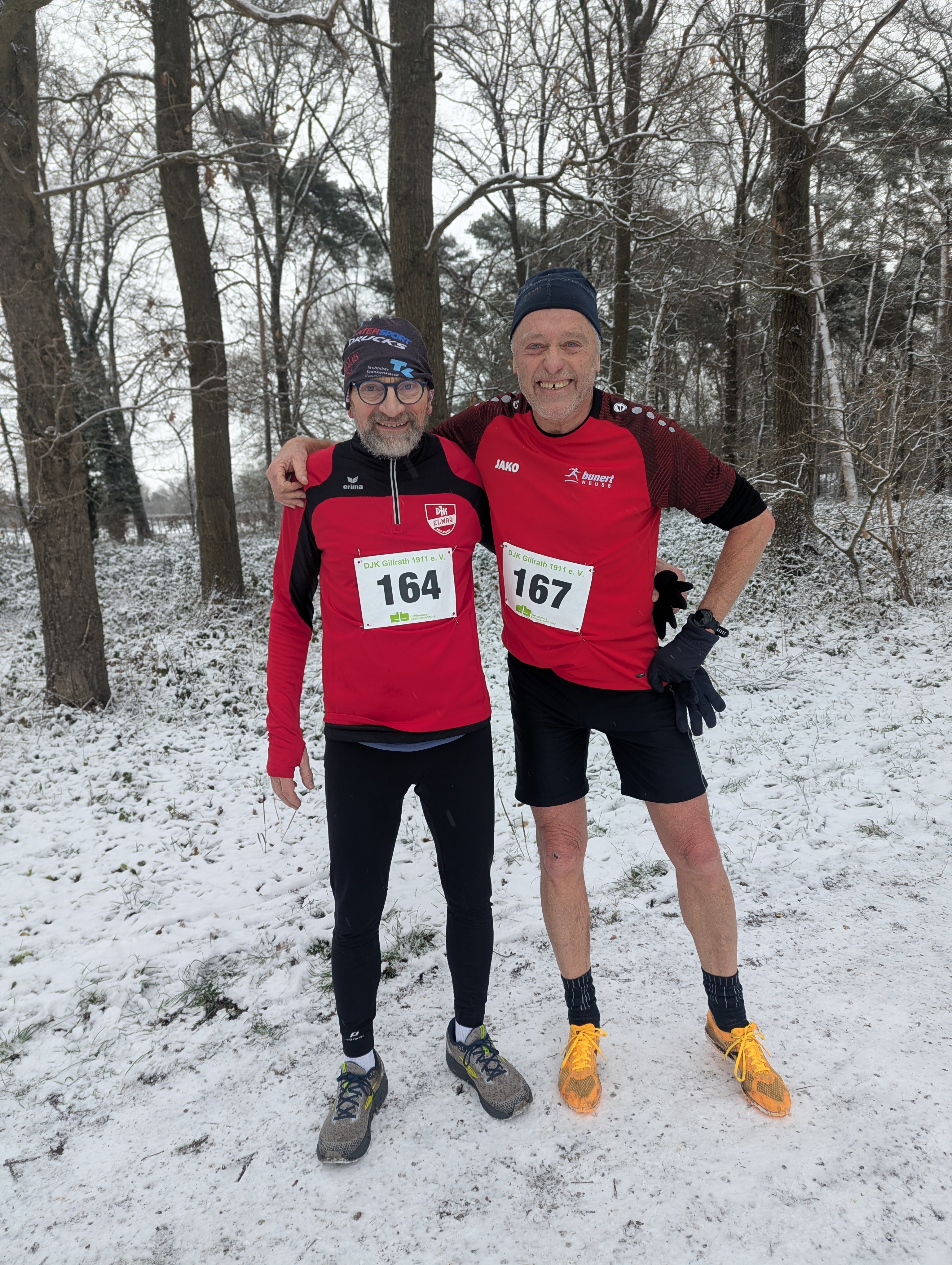 Fast schon Tradition ist mein Start beim Crosslauf über 9,2 km in Gillrath nahe der holländischen Grenze. Auch in diesem Jahr gab es wieder echte Winterverhältnisse. Dauerfrost mit Eis und Schnee auf der Strecke und wunderschön verschneite Bäume umd Sträucher. Da konnten nach langer Zeit mal wieder die Cross-Spikes aus dem Regal geholt werden. ![]() Der 4,1 km Rundkurs durch das Waldgebiet der Teverner Heide besteht zu einem großen Teil aus schmalen interessanten Singletrailpassagen sowie einer langen breiteren Zielgeraden. Die Höhenunterschiede sind eher moderat. Bei mir sorgten die Spikes für guten Halt und Vortrieb auf dem schneebedeckten Geläuf. Fast alle Kilometer blieb ich unter dem optimistisch anvisierten 5er Schnitt. Und so war ich am Ende mit der Zeit von 44:40 rund zweieinhalb Minuten unter der Zeit des Vorjahrs als 13. der Gesamtwertung und 1 der AK. ![]() Da konnte ich die Bratwurst nach dem Zieleinlauf mit gutem Gewissen genießen. Schade nur, dass wie bei so vielen Crossläufen auch beim Gillrather Cross die Teilnehmerzahlen eher überschaubar sind mit 126 Finishern bei der Gesamtveranstaltung. ![]() Auch hatte eine ungewöhnlich hohe Zahl an Voranmeldern wohl angesichts der winterlichen Verhältnisse kalte Füße bekommen umd auf einen Start verzichtet. Willy |